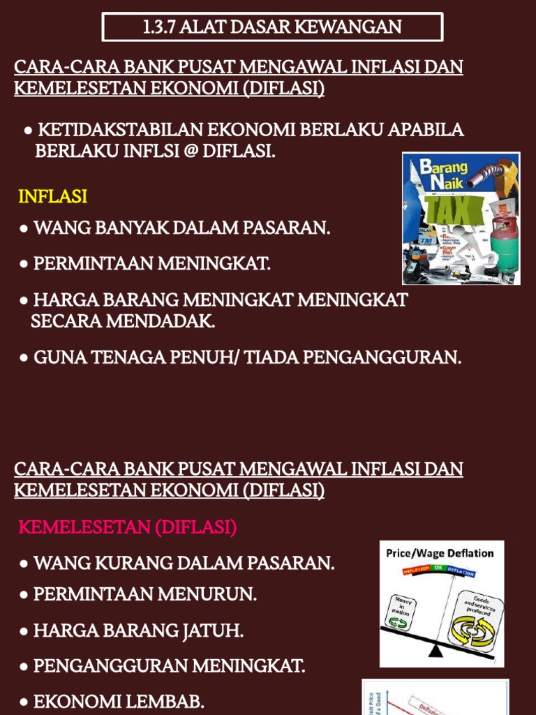Cara-cara bank pusat mengawal inflasi dan kemelesetan ekonomi diflasi ketidakstabilan ekonomi berlaku apabila berlaku inflsi diflasi. Contoh alat dasar kewangan termasuk. Kadar faedah adalah kos peminjaman atau pada dasarnya harga wang.